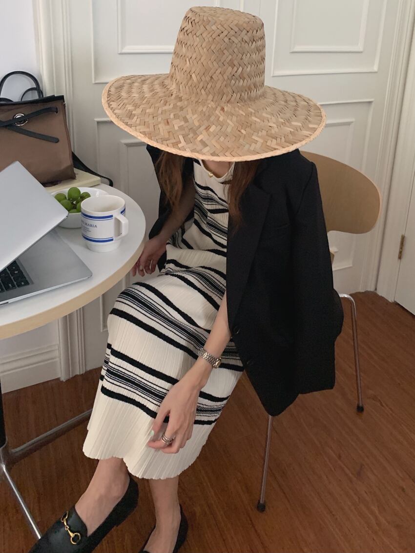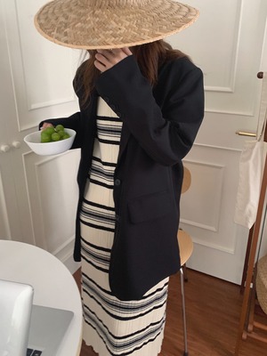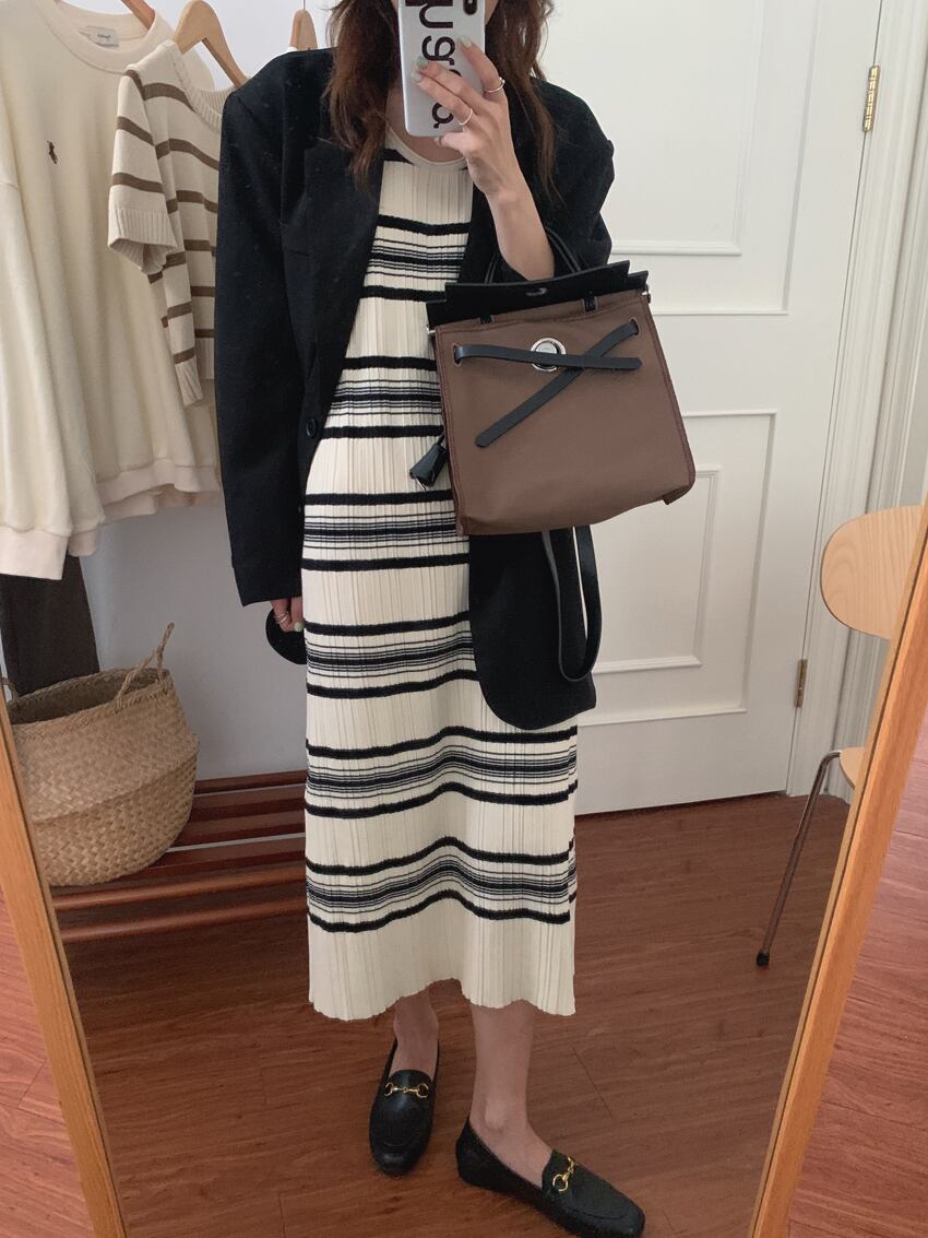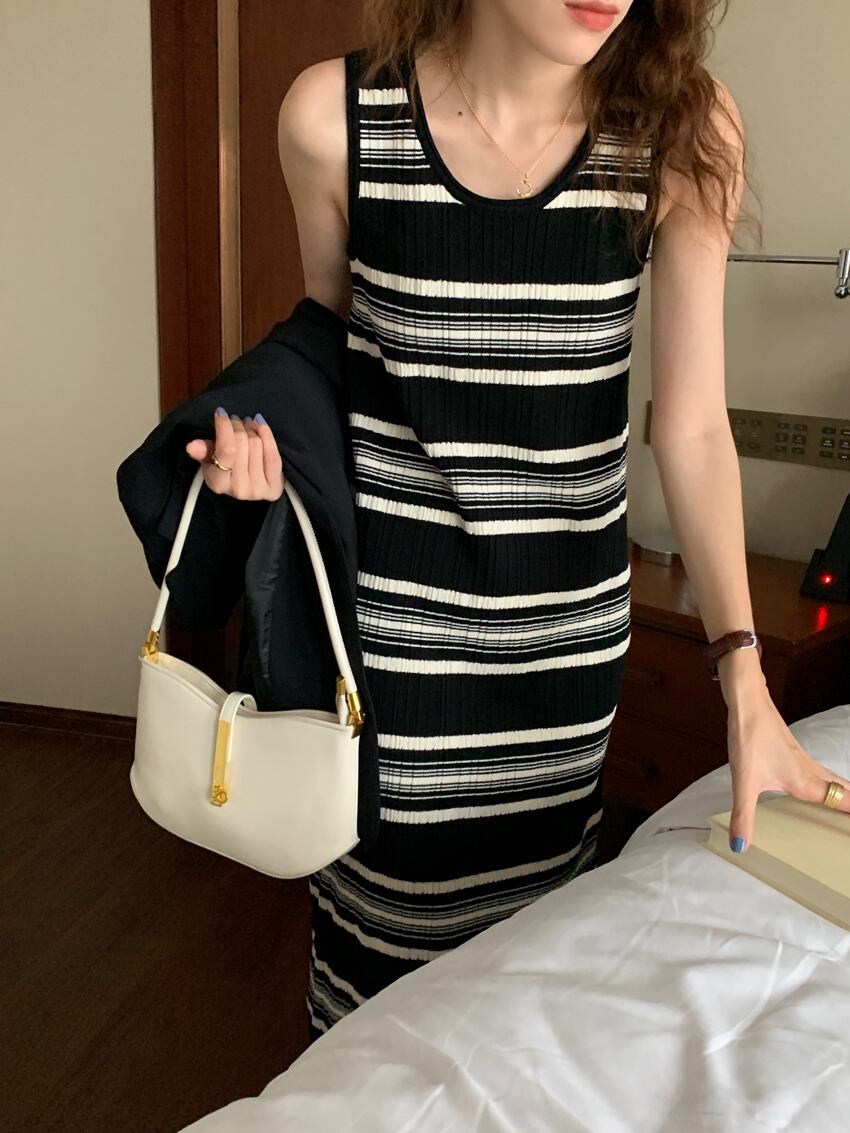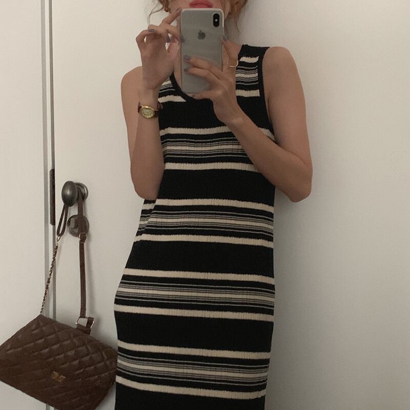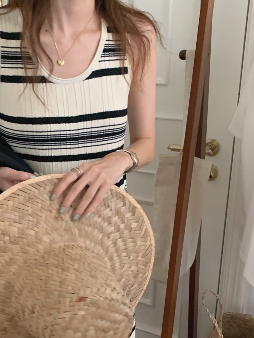 ボーダー ノースリーブバイカラーワンピース t-00305