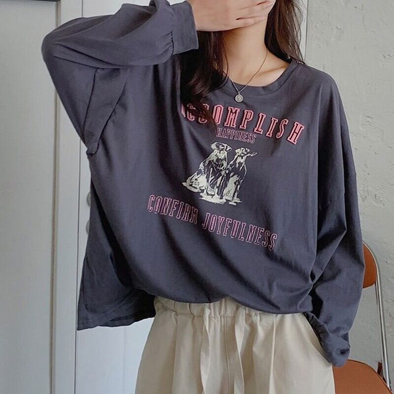 レトロカジュアルロングTシャツ t-00531