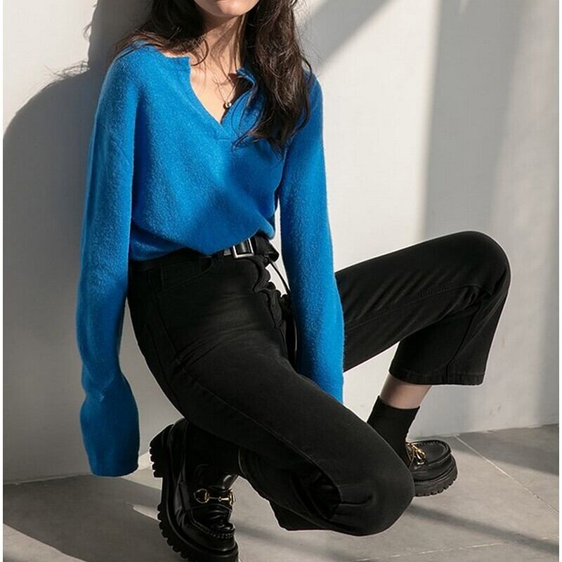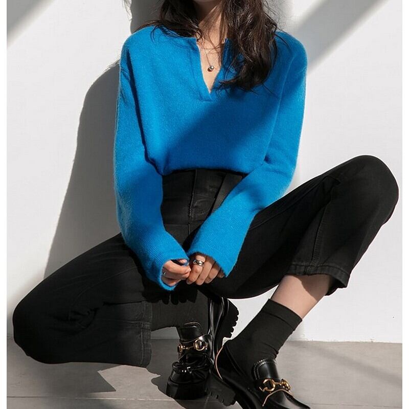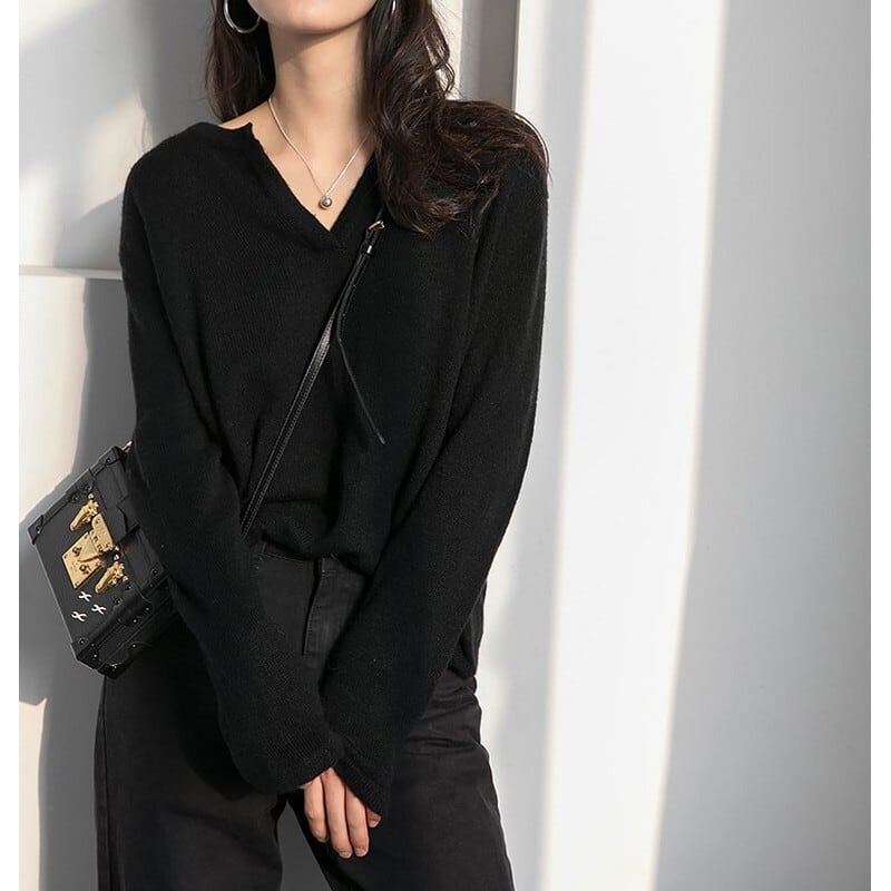 Vネックシンプルデザイン プルオーバートップス t-00685