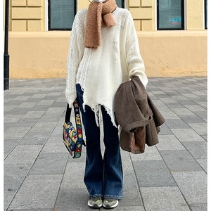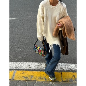 フリンジデザイン ケーブルセーター t-00740