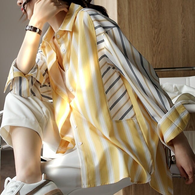 個性的な人と「カブラない」華やかなストライプシャツ。
